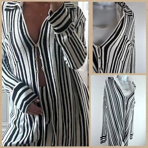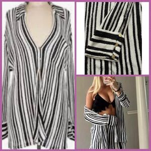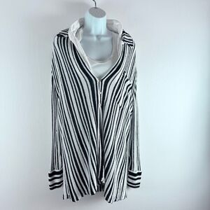 Free People Stripe Cardigan Bash Sweater oversize black & white slouchy medium