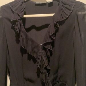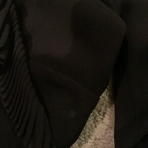 Lovely blouse with sheer sleeves. Only worn once. Small stain on waist (photo included) that can be cleaned or hidden when tied at waist.
