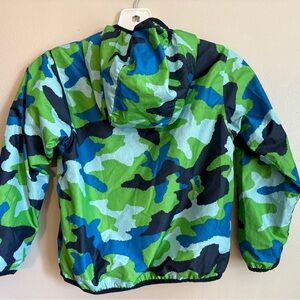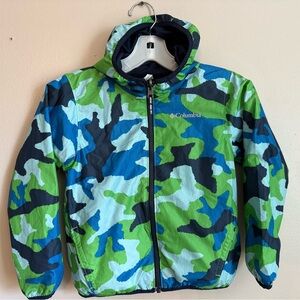 Stylish Columbia jacket with blue and green design. Perfect for outdoor activities.