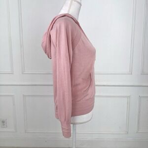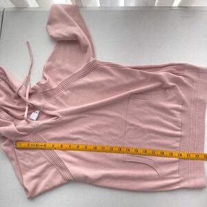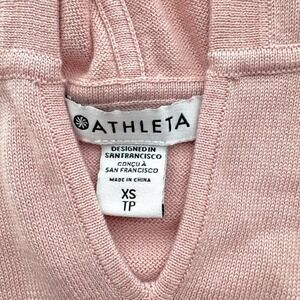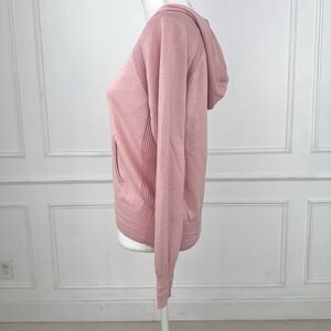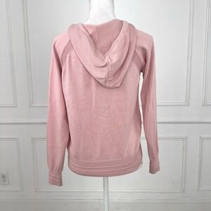 Athleta Pink Knit V Neck Hoodie Pocket Casual Sweater Top Women's XS