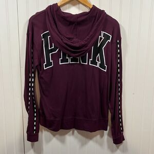 PINK Victoria’s Secret burgundy cowl neck long sleeve graphic hooded pullover lightweight sweatshirt