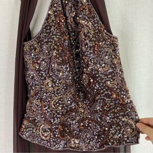 Cassandra Stone Brown Vintage 90s Silk Beaded Halter Ombre Prom Formal Gown 12