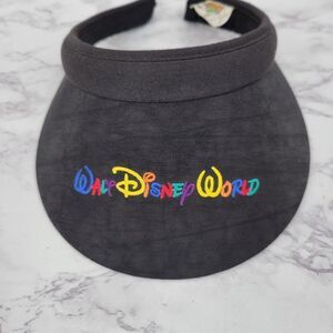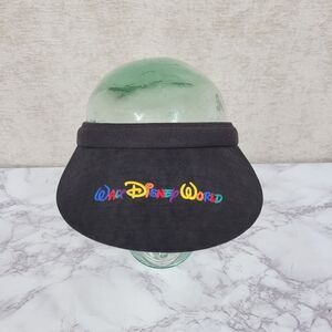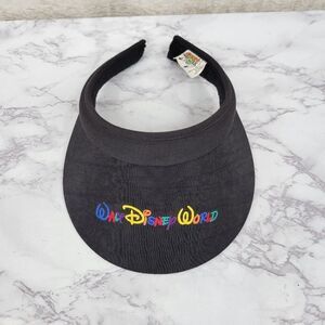 Walt Disney World Vintage Nylon Black Sun Visor Hat Colorful Embroidery