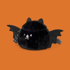 This adorable bat crossbody features plush, faux suede, and embroidered details. Its eyes are real gems! 3D wings stick out from the sides and ears stick out from the top. It's the perfect spooky season statement piece!
