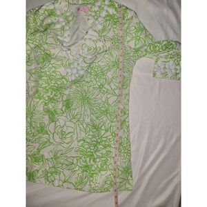 Lilly Pulitzer Tunic Top Green Floral Embellished V Neck 3/4 Sleeve Size 6