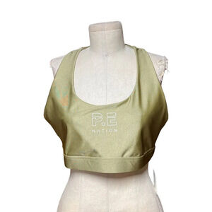 P.E Nation Metallic Gold Logo Scoop Neck Racerback Sports Bra Size 2XL