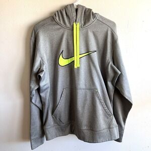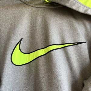 Nike, Therma-FIT, Hoodie, Sweatshirt, Pullover, Neon Green, Logo, Mens, Medium, Gray, Athletic, Activewear, Training, Gym