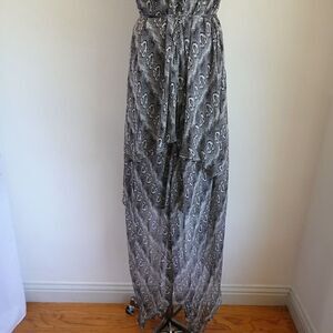 Robert Rodriguez layered Sheer Silk Snake Print Maxi Dress Size 10 Black Gray Wh