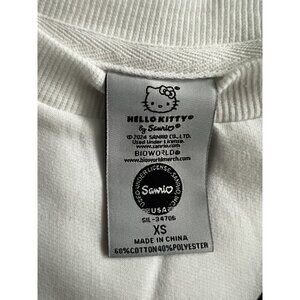 HELLO KITTY CREWNECK SWEATSHIRT WOMEN XS WHITE PREPPY LIGHT SWEATER RELAX