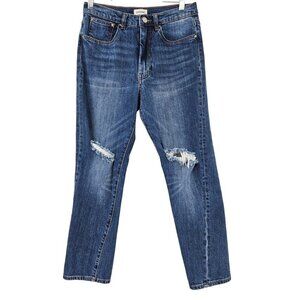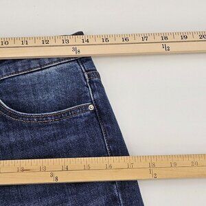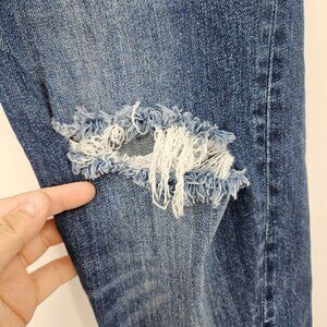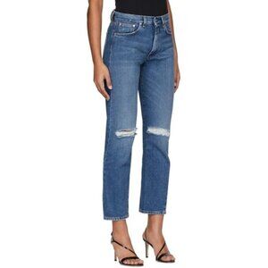 Toteme Original Ripped Twisted Seam Jeans Dark Wash Blue Straight Leg Ankle Crop Mid Rise Distressed Ripped Whiskering Fading Pockets Women’s