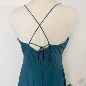 Cut from liquid satin in a luminous teal emerald hue, The Envy Slip Dress by Favorite Daughter is the definition of understated glamour. Its fluid drape, ruched bust, and delicate crisscross back make it effortlessly sultry, whether worn solo or under an oversized blazer. Style it with strappy heels and statement earrings for evening allure, or pair with a cropped sweater and boots for an elevated daytime look.