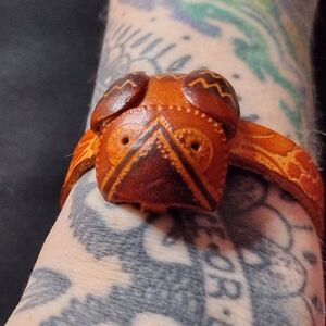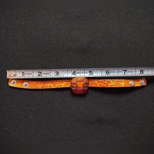 Embrace unique style with this handcrafted genuine leather owl bracelet, with a Snap closure. Featuring rich brown tones, this accessory adds a touch of nature-inspired elegance to any outfit. measurements included in the picture, all questions welcome!