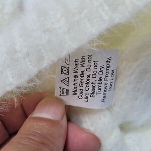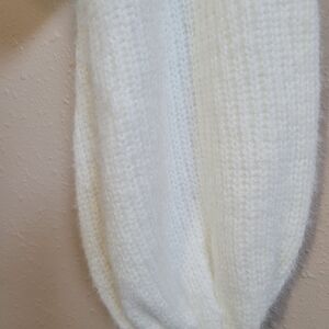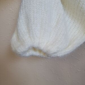 Stay cozy and stylish with this elegant white knitted sweater. Perfect for layering and adding a touch of sophistication to any outfit.