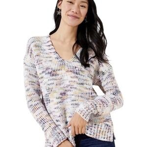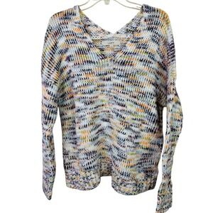 LOFT Sweater Multicolor Size L Spacedye Double V Chunky Knit Oversized