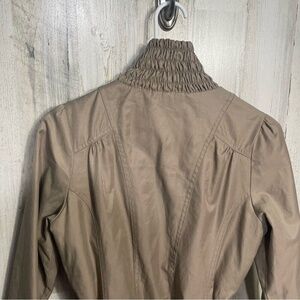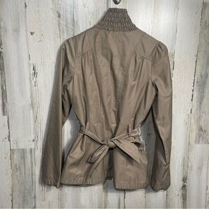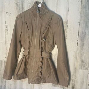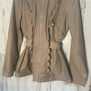 Betsey Johnson Khaki Tan Scalloped Tie Back Zip Up Jacket- size S