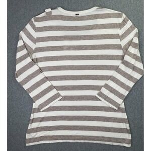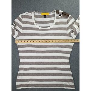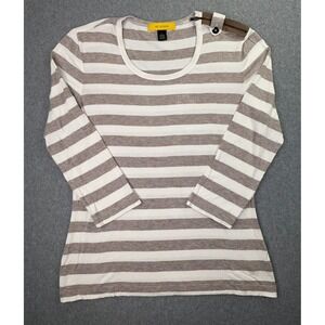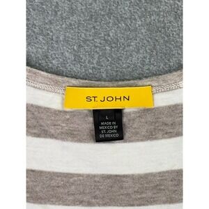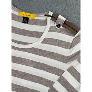 St John Blouse Women's Large Yellow Label Ivory Tan Stripe 3/4 Sleeve Zipper