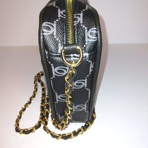 BEBE BLACK & GRAY GOLD MONOGRAM LEATHER CAMERA BAG CROSSBODY PURSE - NWT