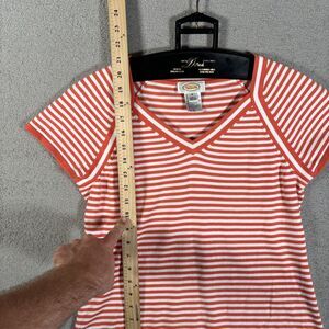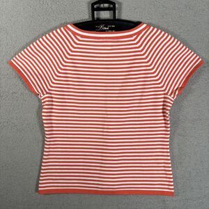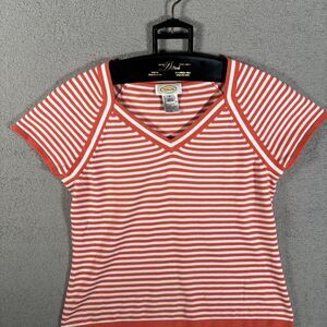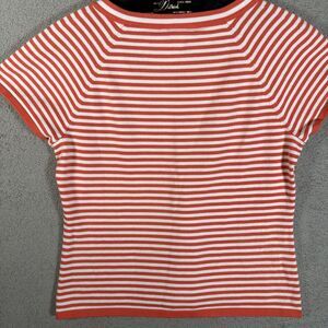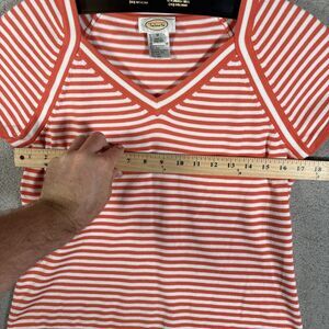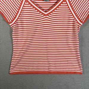 Vintage Talbots Knit Top Women Size M Orange & White Stripe V Neck Short Sleeve