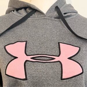 Under Armour Gray Pink Logo Hoodie Pullover Sweatshirt | Women’s Size Medium