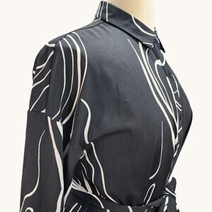 Look polished and elegant in this NWT Nine West long sleeve dress featuring a timeless black and white color palette and a feminine ruffle hem. This versatile dress is perfect for office wear, church, meetings, or dressy everyday occasions.