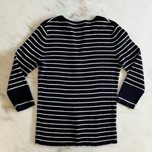 Lauren Ralph Lauren Petite Striped Knit Top 3/4 Sleeve Button Accent