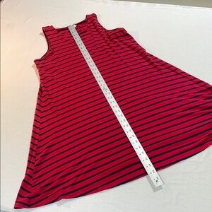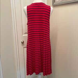 This casual sundress from Old Navy features a vibrant red color with thin black stripes, offering a relaxed and comfortable fit. The sleeveless design and scoop neckline make it perfect for warm weather outings, while the midi length adds a touch of elegance to its casual style.