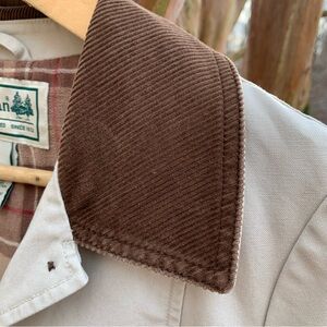 EUC. Cream color with brown corduroy collar detail. Front patch pockets with button closure. Button down styling. Flannel lining.