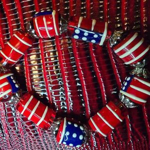 RED WHITE BLUE American Bracelet Glass Beaded Star Flag Stretch Handmade