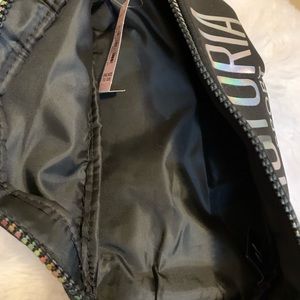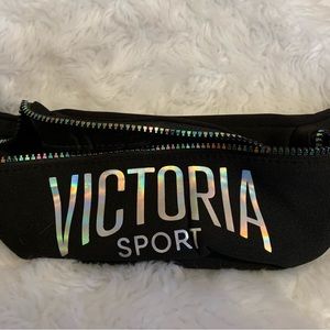 VICTORIAS SECRET SPORT black graphic & rainbow iridescent zippered Fanny belt bag