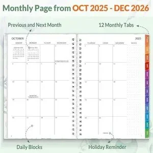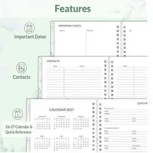 Stay organized with this elegant planner featuring a beautiful green and gold design. Perfect for your home office.