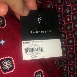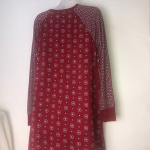 Simply Vera Vera Wang Radiant Red w/Floral Squares Sleep Gown Medium NWT $44.00. Tag references 2 pieces this is only one piece. Pockets sides, 40" chest, 20" sleeve, 34" long. 91% polyester, 9% spandex.