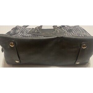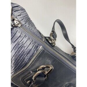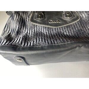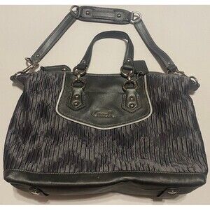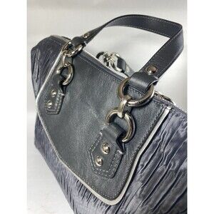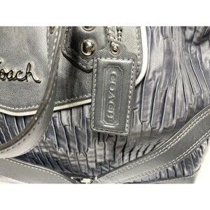 Authentic Coach Madison Pleated Satchel, style F20084. Features pleated black-gray leather and trim and silver hardware. Dual handles and detachable shoulder strap for versatile wear.