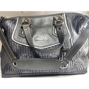 Coach Leather Satchel Purse Bag F20084 Ashley Madison Pleated Gray Pink Lining