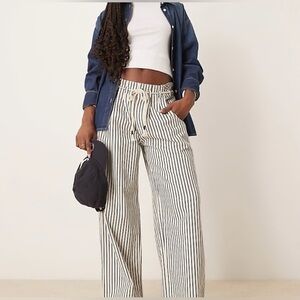 Stylish wide leg pants with a striped pattern. Features a comfortable drawstring waist. Perfect for casual wear.