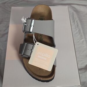 Chic Birkenstock sandals with a platform design. Features adjustable straps for a custom fit.