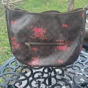 Coach Brown Shoulder Bag with Pink Floral Design