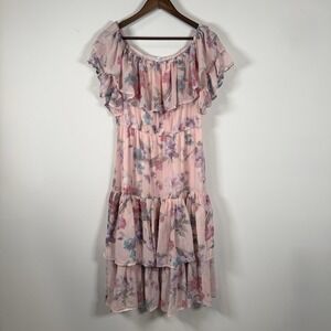 Blueivy Women's Ruffle Layered Dress Large Maxi Tiered Pink Floral Whimsical