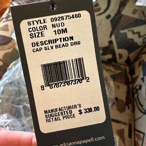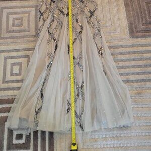 Adrianna Papell square-neck, cap sleeves evening gown in nude shade, size 10.