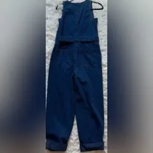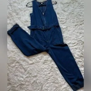 Chic denim overalls with a sleek belt. Ideal for casual wear. Features deep pockets and a stylish fit.