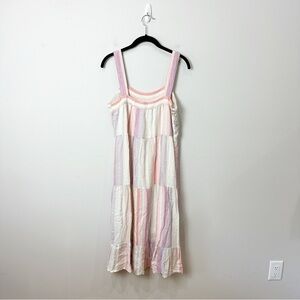 Rails Amaya Dress Juliette Metallic Stripe Pink Linen Midi
