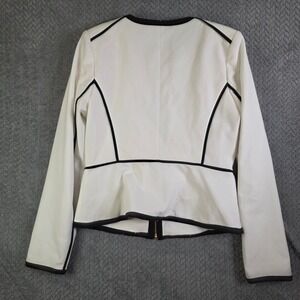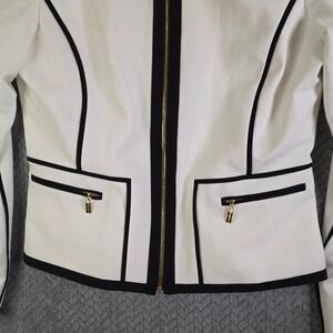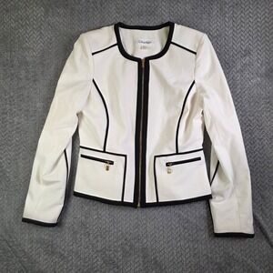 Calvin Klein Women's White Black Trim Zip Blazer Jacket Size 10P Petite