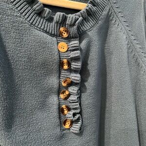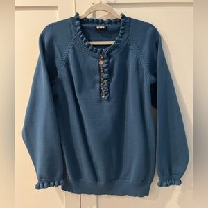 BTFBM Women's Ruffle Crew Neck Sweater Blue | Large