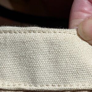Color: Cream / ivory with red bottom panel and black accents