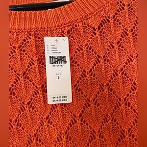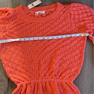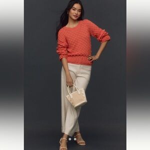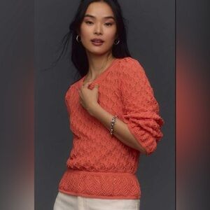 Anthropologie Sweater Flounce-Hem Pointelle Pullover Ruffle Tangerine Large NWT
