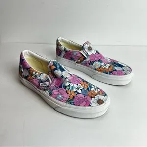 Vans Floral Canvas Shoes Women's 8.5 or Men's 7 Slip On Off The Wall Pink Unisex