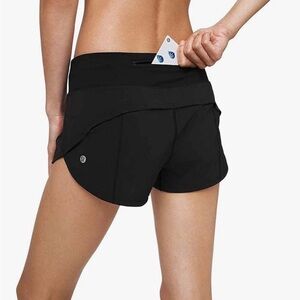 Lululemon Speed Up running shorts, featuring a built-in liner, a rear zippered pocket, and the brand's Swift fabric. Excellent condition Size 2