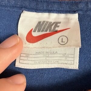 Nike Shirt Mens Large Blue Vtg 90s Varsity Long Sleeve Embroidered Made In USA