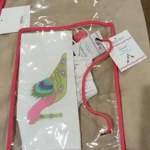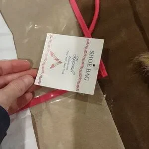 smoke-free home. this is a shoe bag for traveling. bought in New york. I travel a lot for work and bought several of these shoe bags. I just listed two with two different designs. just spending out a bit. these are brand new. great way to store your shoes while you're traveling through your clothes don't get dirty.
