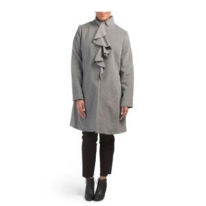 T Tahari Plus Size Kate Fall Winter Wool Cashmere Grey Coat with ruffles