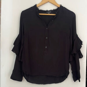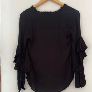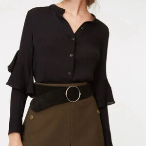 Office , work , business quiet luxury, old money aesthetic, old money outfits, palm beach county,classy, luxury, demure, palmbeaches , luxury ,inspiring, goals Chic black blouse with ruffled sleeves. Button-up front. Versatile and stylish.